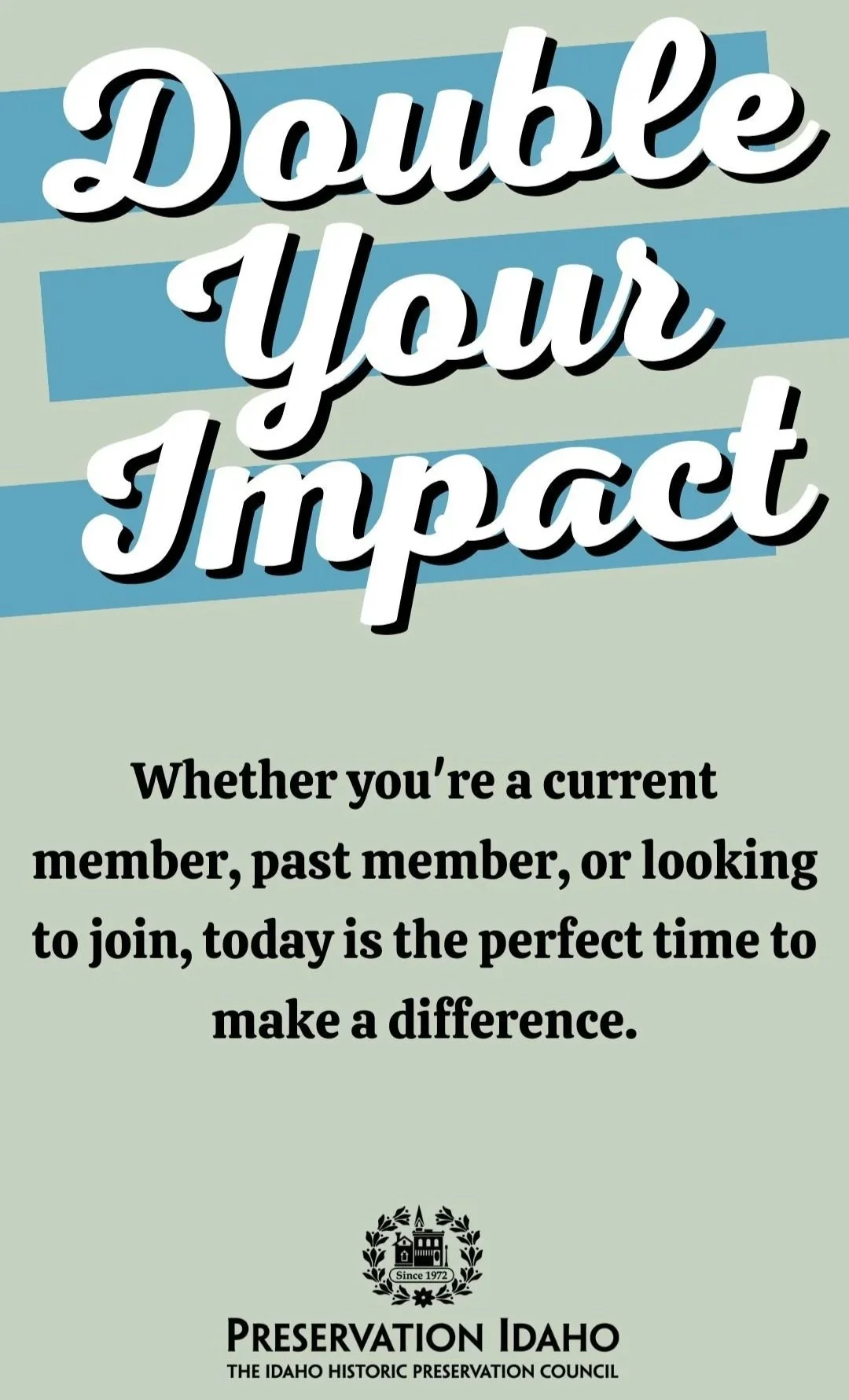This is an opportunity to amplify the impact of your gift and help make sure that Idaho’s historic architecture and the stories behind it are preserved for generations to come. Whether you’re a current member, a returning supporter, or joining for the very first time, your membership truly matters.